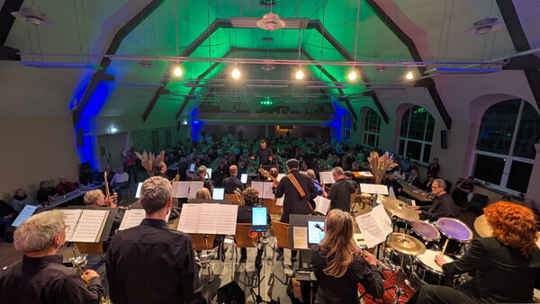 Danach zogen sich der Posaunenchor und sein Dirigent, Willi Klein, zurück und überließen nach einer kurzen Umbaupause der Big Band Hedtberg Brass und ihrem Bandleader Manuel Galemann die Bühne.